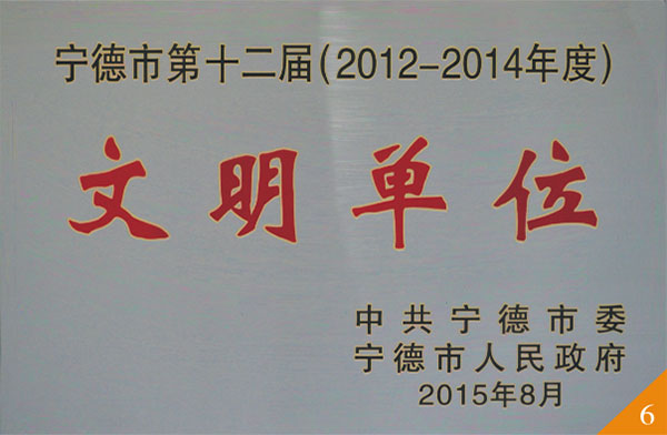 成人漫画 荣获宁德市第十二届(2012-2014年度)文明单位称号